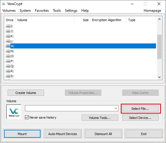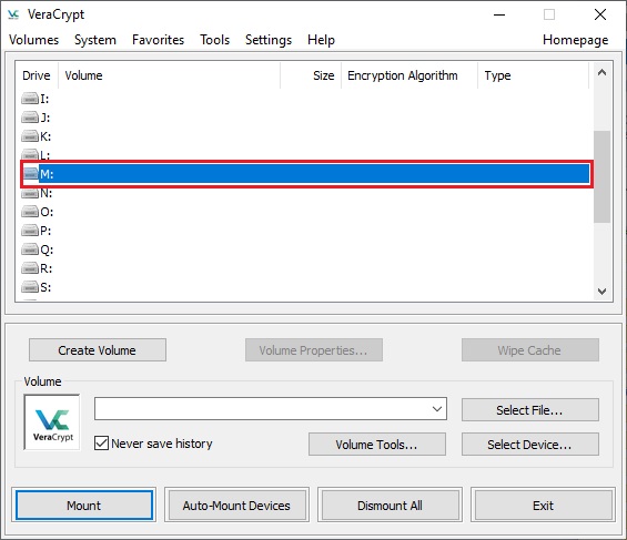 In the following steps, we will return to the main VeraCrypt window.
